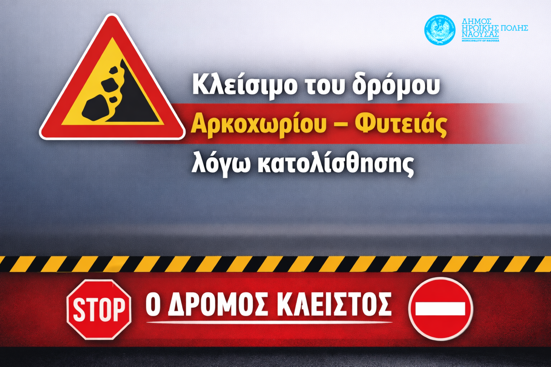 Ο Δήμος Ηρωικής Πόλεως Νάουσας θα ενημερώσει εκ νέου με νεότερη ανακοίνωση για την πορεία των εργασιών και τον χρόνο επαναλειτουργίας της οδού.