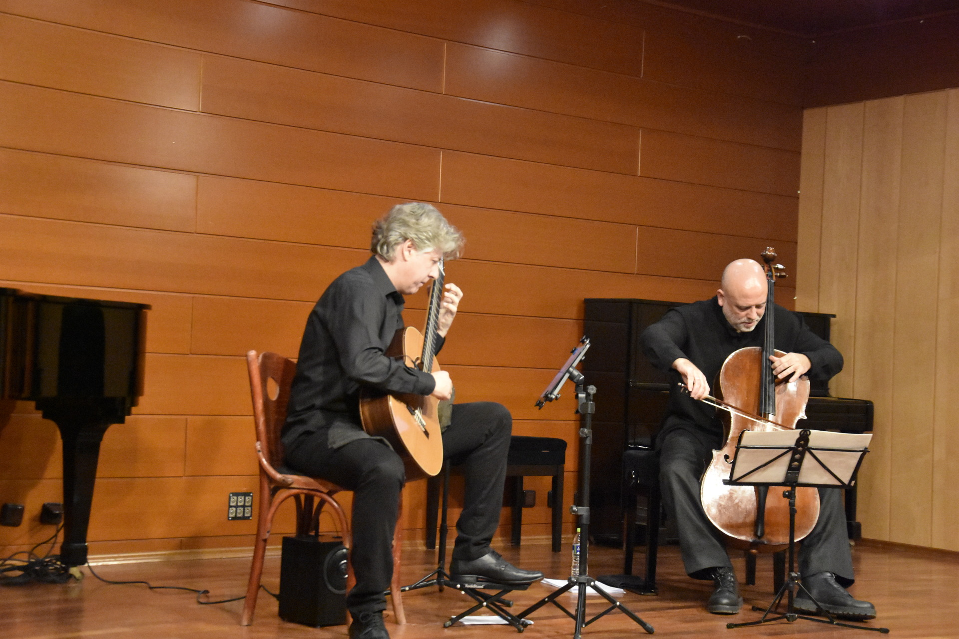 Οι δύο καταξιωμένοι καλλιτέχνες Δήμος Γκουνταρούλης (τσέλο) και Θάνος Μήτσαλας (κιθάρα) παρουσίασαν ένα υψηλού επιπέδου μουσικό πρόγραμμα, αναδεικνύοντας με ευρηματικό και καλλιτεχνικά άρτιο τρόπο τη σπάνια συνύπαρξη των δύο οργάνων. Μέσα από ευφάνταστες συνθέσεις και ερμηνείες υψηλής αισθητικής, κατάφεραν να αιχμαλωτίσουν το ενδιαφέρον και τις αισθήσεις του κοινού, το οποίο ανταποκρίθηκε με θερμό χειροκρότημα.