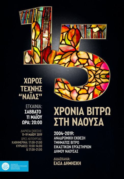 Το τμήμα βιτρώ των Εικαστικών Εργαστηρίων του Δήμου Νάουσας διοργανώνει την έκθεση «15 Χρόνια βιτρώ στη Νάουσα» και παρουσιάζει έργα των σπουδαστών του τμήματος από την έναρξη της λειτουργίας του το 2004 μέχρι και σήμερα.