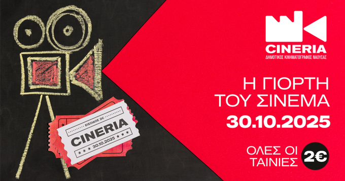 Την Πέμπτη 30 Οκτωβρίου το κοινό στον κινηματογράφο "CINERIA" θα απολαύσει τις ταινίες "Χάιντι" στις 18:15 και "Μετά το κυνήγι" στις 21:15 στον Πολυχώρο Πολιτισμού "Χρήστος Λαναράς" (ΕΡΙΑ), δίνοντας ραντεβού στη μεγαλύτερη κινηματογραφική γιορτή της χρονιάς μόνο με 2 ευρώ.