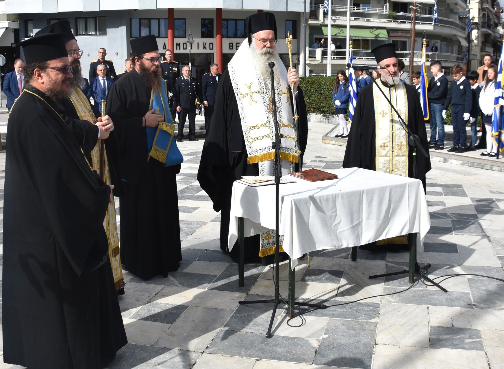 Ακολούθησε ενός λεπτού σιγή υπέρ των πεσόντων και ανάκρουση του Εθνικού Ύμνου, με τη συμμετοχή της Φιλαρμονικής και του Στρατού.